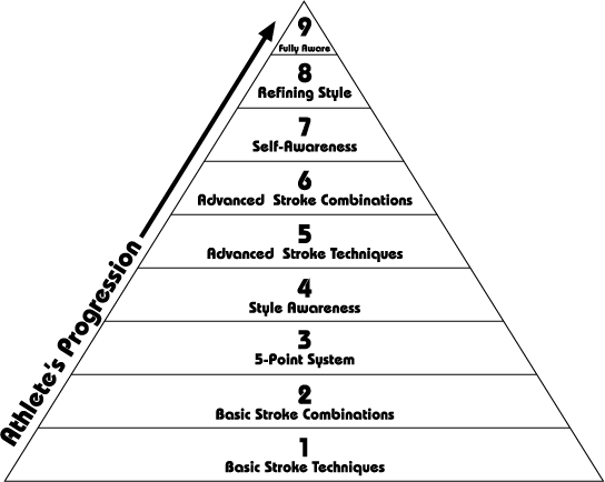 Once these advanced techniques are learned, they must be combined with the student’s existing strokes and blended into the desired style of play. During this stage, the 5-Point System is revisited and practiced using the new combination of advanced strokes. Again, this stage requires a lot of personal attention from the coach to keep the student on track.